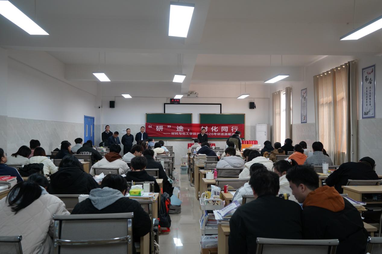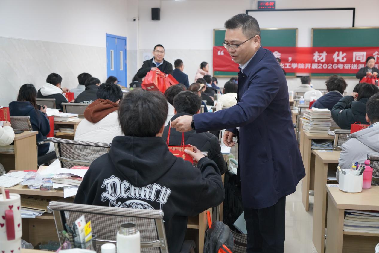 为鼓舞考研学子士气,传递学院温暖关怀,12月8日上午,ok138cn太阳集团529在材化楼考研自习室607、609开展主题为“光聚研途,材化同行”2026考研送温暖活动。学院党委书记徐粤宇,院长黄先威,副书记陶连洲,副院长兰东辉、谭建平,学办全体辅导员参加。本次活动由学院爱心社主办。
