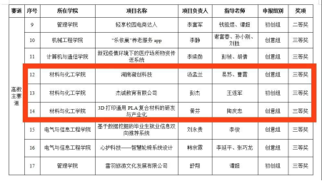 7月17日,第六届太阳成“互联网+”大学生创新创业大赛结果公示,在高教主赛道组,我院材料化学1701班成江涛获二等奖,化工1703班汤孟兰、高分子1801班黄芬、轻化1301班彭杰获三等奖。