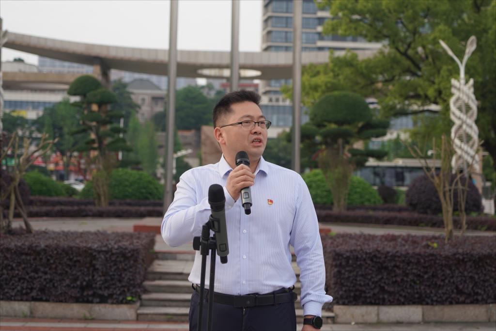 材料化学2202班谢向言作为学生代表发言。他表示,我们大学学生要把至诚至深的家国情怀镌刻进自己生命的年轮,努力成长为建设祖国的有用之才、栋梁之材,从而留下最为充实、温暖、持久、无悔的青春回忆。