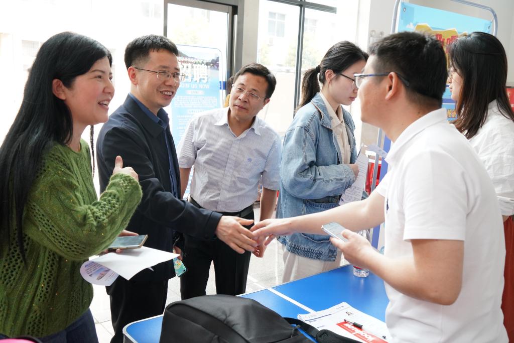 4月8日,ok138cn太阳集团529在材化楼大厅举办2025届毕业生专场招聘会。学院党委书记徐粤宇,党委副书记、院长张儒,党委副书记陶连洲,以及医学工程技术学院党委副书记罗荃到场指导工作。