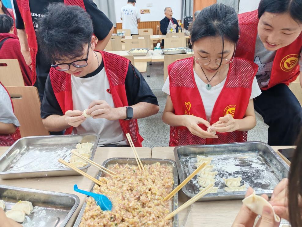 活动伊始,汪建华首先作开场致辞,简要介绍了本次活动的举办背景与意义。随后,包饺子竞赛正式开始。比赛环节中,同学们围坐在桌前,有的手法娴熟、一气呵成,有的则是初次尝试,捏出的饺子形态各异,现场笑声不断。退休教师在旁示范包饺子的技巧,现场气氛温暖而热烈。